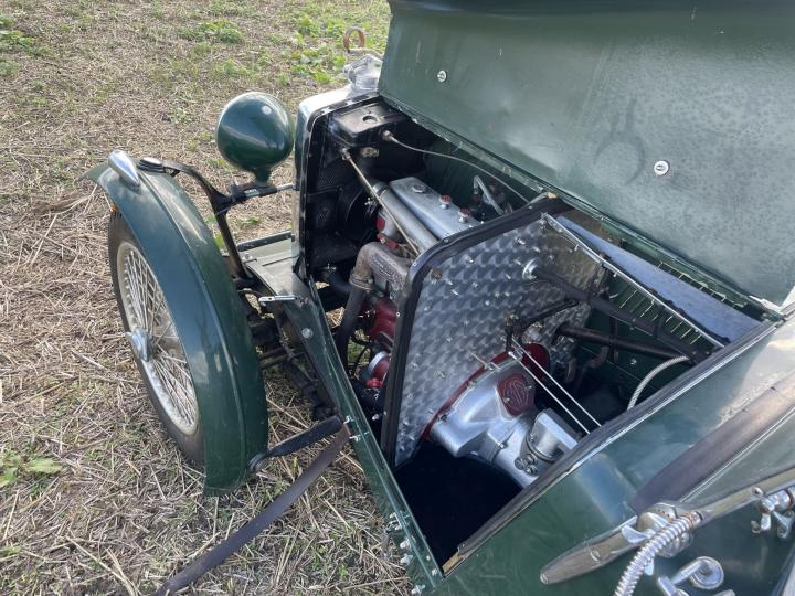 De voor-oorloghse sportwagen heeft een 4 cilinder motor met 849cc inhoud en levert 36 bhp.
