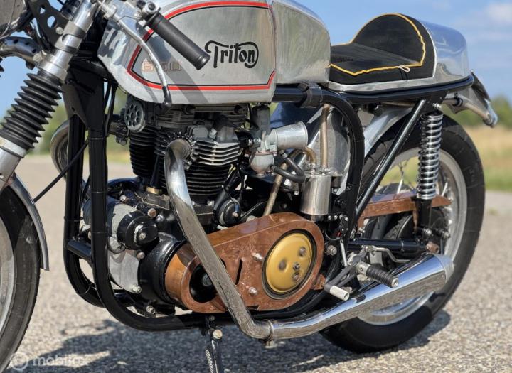 Een Triton is een samenstelling van een Norton Featherbedframe met een Triumph 650 parallel twin blok. In de jaren 50 en 60 zijn er veel van deze motoren gebouwd en er is er geen één hetzelfde. In 2022 is deze motor volledig gereviseerd en daarna is er eigenlijk niet mee gereden, hierbij is ook het frame gepoedercoat.