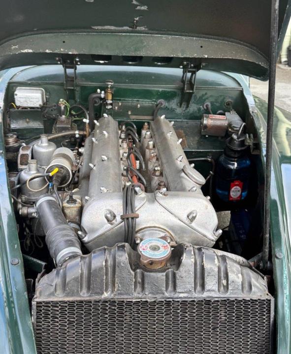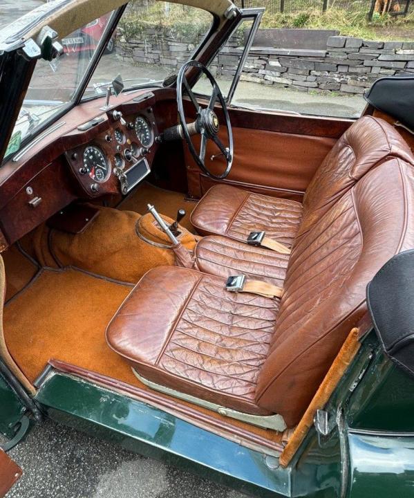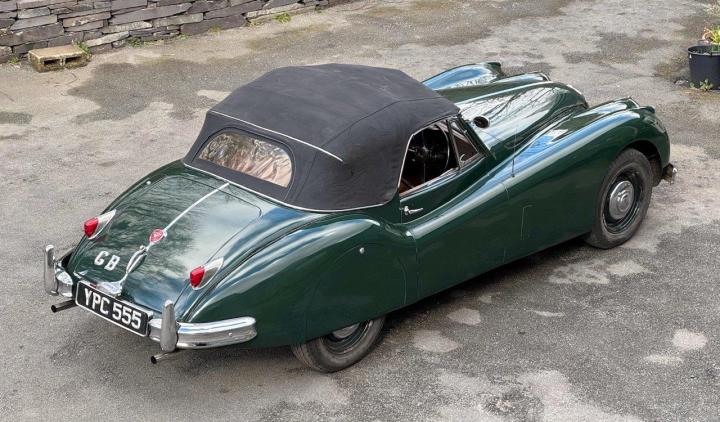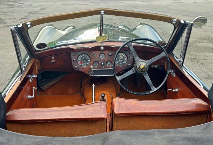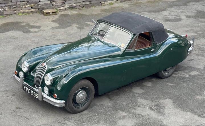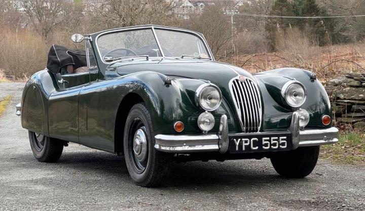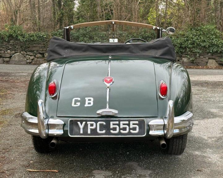A totally correct and exceptionally original example of a rare UK market, RHD drophead, supplied new in 1955 by The Woodcote Motor Co, Epsom. Sound condition, cosmetically mature and appealing, retaining original, mellowed tan leather interior, and of nicely understated specification with disc wheels and spats. The paint shows its age in a quite charming way, the chrome work is very good to excellent, and the overall appearance is seductively appealing. One owner from 1974 to 2015, and one since. Just 6,000 odd miles covered during those fifty years! Recent work has included a new stainless exhaust, new clutch, complete re-wire and a good deal more besides. Comes with a Jaguar heritage certificate confirming original specification and colour scheme, and a file of invoices from recent years showing parts expenditure, etc. Driving very nicely, sounding great, and fun to whizz around in! Very few survive in such undisturbed condition! We also have a fresher, restored version, also on our website. Part exchanges happily considered.