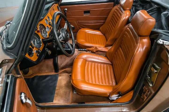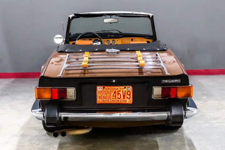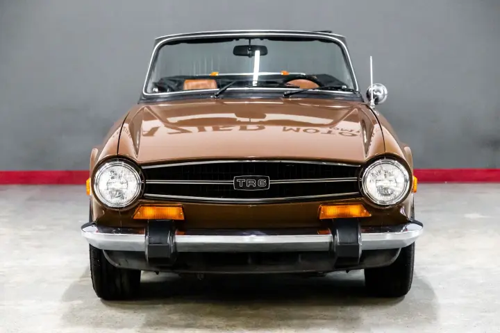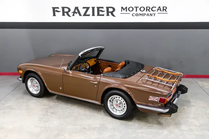 This very straight and solid ICONIC TR6 hails from Arizona .The car has no rust or rust history ,all the body panel gaps are factory straight and car shows no signs of accident or rust history. The soft top as well as seat cushions are new .Tires are deep in tread. Engine is tight ,tidy, strong with good compression. The drive is tight and car pulls well. Suspension is tight and car tracks nicely down the road. Paint is in nice condition as is all bright work. Dash is void of cracks as is the dash cap and knee pads. Carpets and seats are in good order.