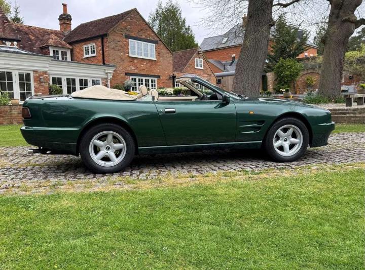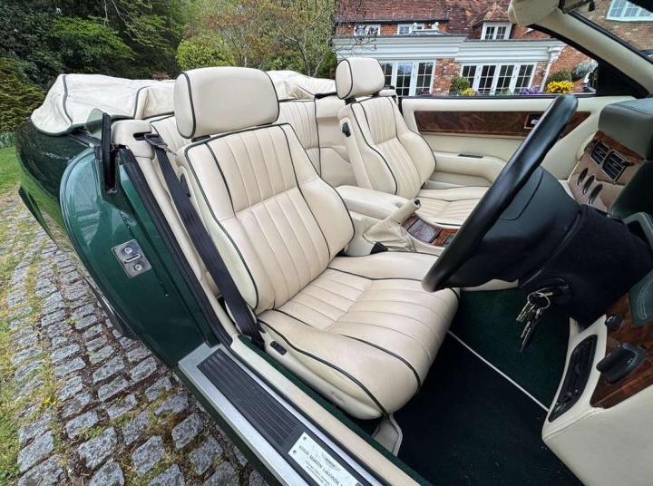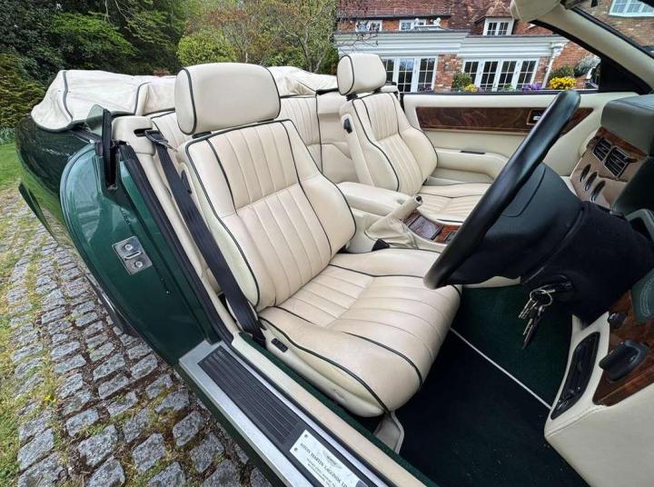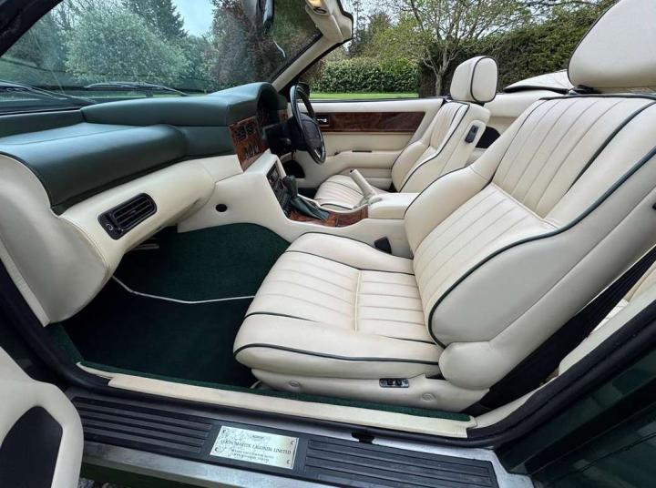 1993 Aston Martin Virage Volante finished in Buckinghamshire Green with Parchment leather piped in dark green. It has a Black mohair hood with parchment Alcantara headlining, Green Wilton carpets throughout with parchment piping. This is without question one of the finest and most desirable Virage Volante's we have had the pleasure of offering for sale. It has covered a mere 17,500 miles from new the interior is beautifully original and the bodywork and paintwork are totally stunning. The Aston Martin service history is up to date and complete and this car is a real pleasure to drive. Only 121 Right Hand Drive Virage Volante's were ever built making this extremely low mileage example, very rare indeed. This is a golden opportunity to purchase what has now become a classic Aston Martin at a realistic price for one in this exemplary condition. £69,950